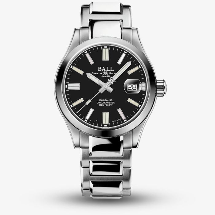 The Ball Engineer III Legend II (40mm) is a precision-engineered timepiece that blends classic styling with cutting-edge functionality. Featuring a sleek black dial and a chronometer-certified automatic movement, this watch delivers exceptional accuracy and performance. A date window adds practical utility, while 19 micro gas tubes on the hour, minute, and second hands, as well as the dial, ensure unmatched night readability without the need for external light sources. Built for reliability in all conditions, the Legend II is a testament to Ball Watch’s legacy of innovation and rugged elegance. Limited to 1000 pieces. • Powered by the chronometer certified automatic movement. • Presented on a silver stainless steel bracelet with fold over clasp. • Scratch resistant sapphire crystal glass. • 40mm case width. • 100 metre water resistance.