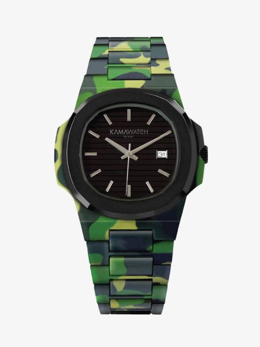 KAMAWATCH Limited Edition Fix Bope Black and Green Camo Plastic Bracelet Watch KWPF29