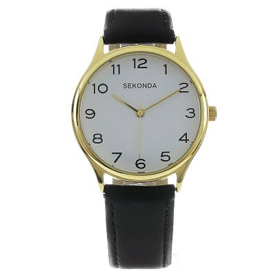 Sekonda Easy Reader Gold & Black Leather Strap Watch 1854